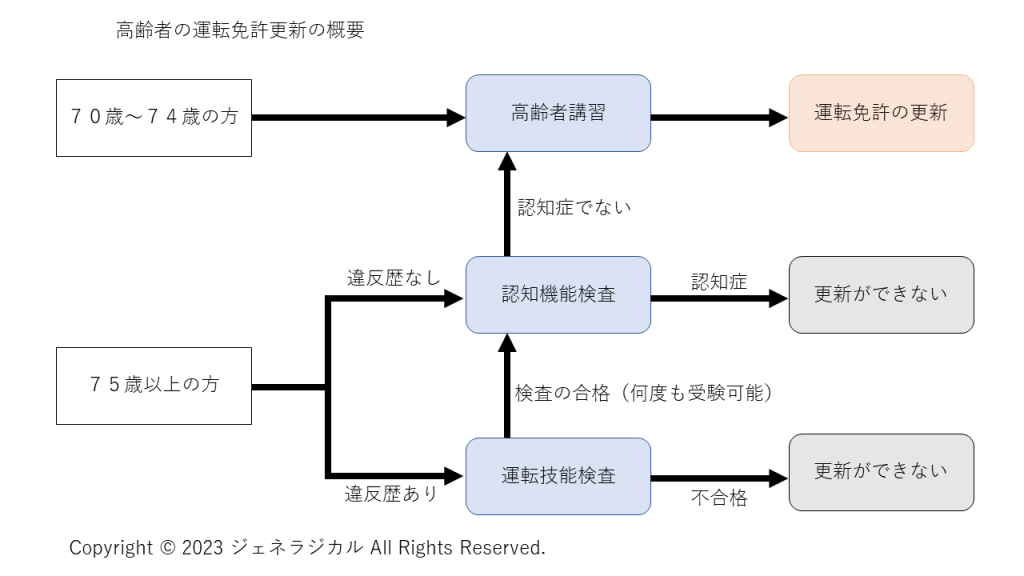 ざっくり言うと75歳以上の方が運転免許の更新の際に一定の要件を満たしていると検査を受けなくてはなりません。そして、検査結果が一定の基準に満たなければ不合格となり、検査の合格がなければ運転免許証の更新を受けることができません。