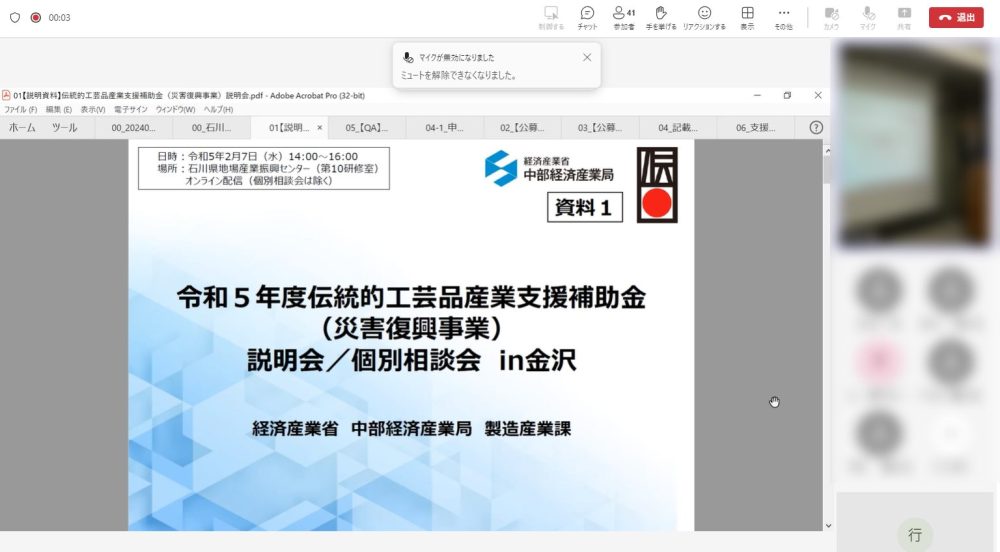 研修名:令和5年度伝統的工芸品産業支援補助金(災害復興事業)説明会/個別相談会 in金沢